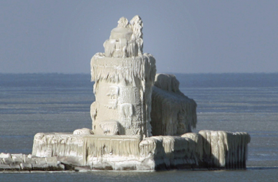 The Cleveland West Breakwater Lighthouse encased in ice on December 19, 2010. (Lighthouse Digest archives photo by Mike Kline) Back to the edition of: Mar/Apr 2021