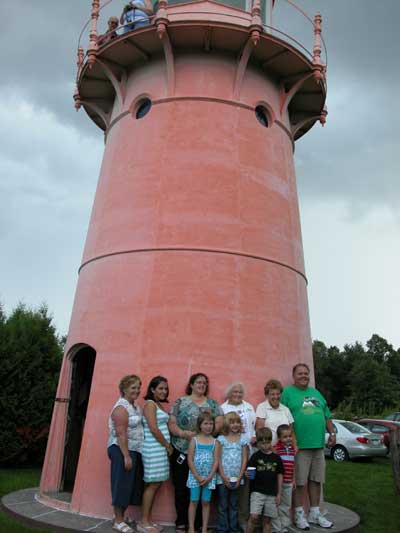 Shirley Morong, in the center, poses with a few of the well-wishers at her 100th birthday party in front of Vermont’s Isle La Motte Lighthouse. Back to the edition of: April 2009