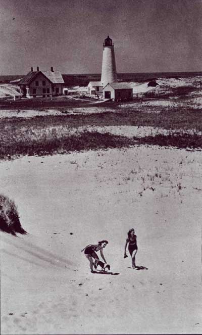 The Look girls are shown scaling the dunes on the northeast tip of Nantucket with the Great Point Lighthouse behind them. The last thing on their minds was the clouds of war looming over the sea. Back to the edition of: June 2009