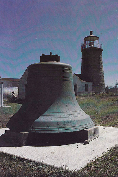 The Manana Island fog bell rests on wood blocks atop a concrete foundation on Monhegan Island before the stanchion arrived from Manana Island. (Lighthouse Digest archives.) Back to the edition of: Mar/Apr 2017