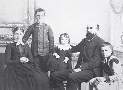 Sankaty Head Lighthouse keeper Joseph G. Remsen is shown with his family. Left to right are his wife Anna Joy, son William G., daughter Elizabeth Abbott, and daughter Ethel. It was his daughter Elizabeth Abbott Remsen who grew up to marry lighthouse keeper Carl Delano Hill.