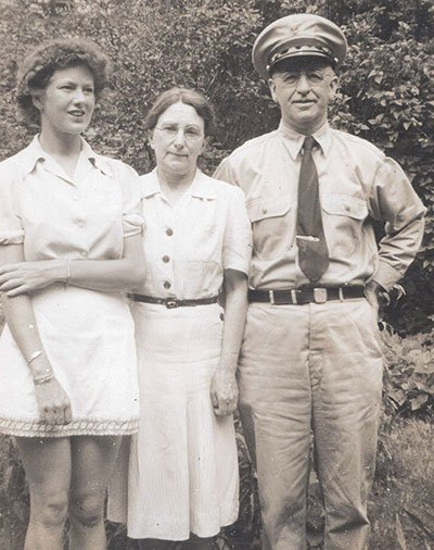 Mary P. Hill is shown here with her parents Elizabeth R. and Carl D. Hill. Almost up until the time that she got married to Lewis W. Stevens, she had spent her life living at lighthouses where her father had been the lighthouse keeper. (Photo courtesy Timothy Hill Stevens.) Back to the edition of: May/Jun 2018
