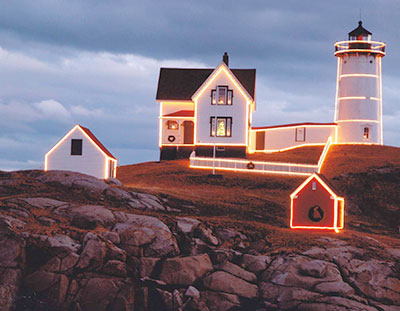 Nubble Lighthouse as it appears during the annual Christmas Lighting of the Nubble. Back to the edition of: Jul/Aug 2018