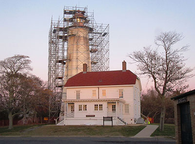 Sandy Hook Lighthouse surrounded by scaffolding. Back to the edition of: Sep/Oct 2018