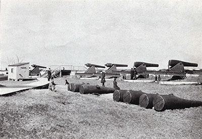 The old civil war cannons on the outer battery of Fort Wood were fired to summon the doctor from Manhattan to help with the delivery of Liberty Miller on the evening of July 4, 1893 because the post doctor was “gloriously drunk” that night and unable to offer any assistance. (Rand McNally)