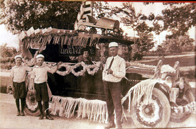 Orland and Hilda Lynd with sons Orland Jr. (r) and Harold (l) in the July 4, 1927 parade in Kewanuee, Wisconsin. The car was all decked out for the holiday parade. Barely visible is a sign behind Mrs. Lynd that says, “Lynd’s Auto Painting,” which was a side business that Orland Lynd operated while being a lighthouse keeper. It was this photo, published in the June/July 2009 issue of Reminisce magazine and sent to us by Lighthouse Digest subscriber Albert Doane of Ohio that started us on the detective work to track down Orland Lynd’s granddaughter, Gayle Witmer who, at that time, was unaware of Lighthouse Digest.
