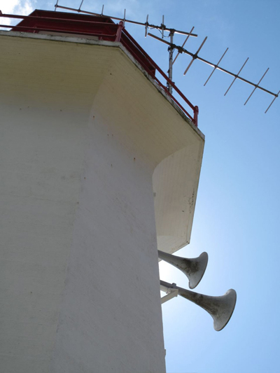 Along with the modern TV antenna, the old fog horns are still in place at Cape Mudge Lighthouse. Back to the edition of: October 2010