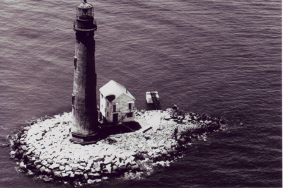 The second Sand Island Lighthouse, Alabama as it appeared in 1963. (Lighthouse Digest archives) Back to the edition of: October 2010