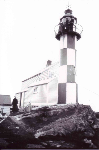 Fanny Cooper is shown outside the Random Head Lighthouse keeper’s house. The people at the top of the lighthouse are not known. Sadly, the old keeper’s house where the Cooper families lived, learned and loved is no longer standing, having been lost to the pages of time. (Photograph courtesy Elizabeth (Cooper) Bustard.) Back to the edition of: November 2010