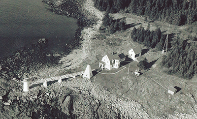 Historic aerial view of the Marshall Point Lighthouse in Port Clyde, Maine. The barn is in between the keeper’s house and the signal tower. (Lighthouse Digest archives.) Back to the edition of: Jan/Feb 2020