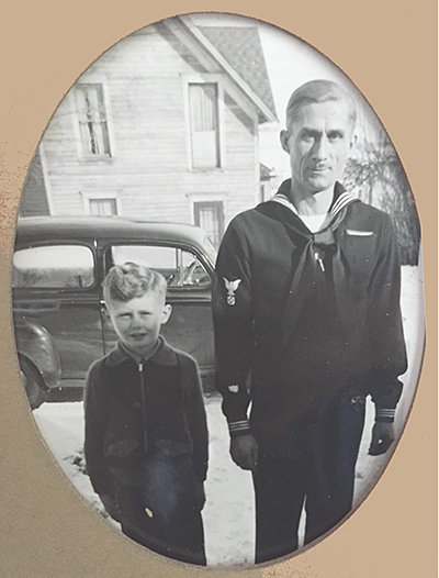 Benjamin S. Hudak, wearing his Coast Guard uniform, is shown here with his son James (Jim) in 1942 by the family home in Bayfield, Wisconsin. During World War II, Ben Hudak served in the Coast Guard from 1941 to 1946 as a Boatswains Mate 1st Class. During the winter months, he was assigned to the Duluth Coast Guard Station and was back at the lighthouse during the shipping season. In 1946 he went back to being a civilian lighthouse keeper. (Courtesy James S. Hudak.) Back to the edition of: Jan/Feb 2020