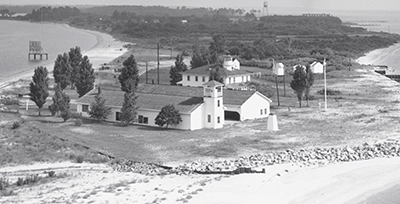 The fog bell tower at Point Lookout Light and Buoy Station near Scotland, Maryland was built in 1888 and attached to end of a coal shed. (Courtesy U.S. Coast Guard) Back to the edition of: Nov/Dec 2020