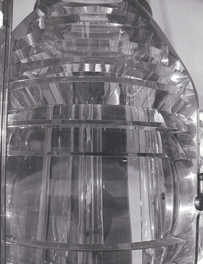 In 1985, a college student showed up at the Cape Neddick Lighthouse in York, Maine asking for permission and access to do a photo essay. The photographer sent copies of some of his photos to Bob French shortly thereafter. This image he took shows the close-up detail of the fixed 4th order Fresnel lens in the lantern room. (Courtesy York Parks and Recreation) Back to the edition of: Jan/Feb 2021