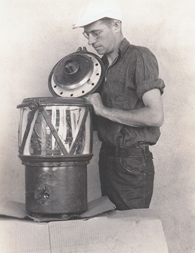 This photo, taken on July 3, 1937, shows LeRoy White with a 200-mm buoy lantern in the lamp shop of the U.S. Lighthouse Service’s Terminal Island Depot in San Pedro. (Courtesy of Judie Noffsinger) Back to the edition of: Jul/Aug 2022
