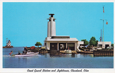 The two Coastguardsmen were dispatched from the Cleveland Coast Guard Station, as shown here, on Whiskey Island in Cleveland, Ohio. The station, with its 60-foot-tall observation tower, was built in 1940, and decommissioned and closed by the Coast Guard in 1976. It was from here that the Coastguardsmen travelled by ice skiff to the lighthouse that can be seen in the left in the photo, way in the distance, where the bomb was reported as being placed. The restored station is now on the National Register of Historic Places. (Lighthouse Digest archives)