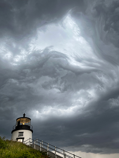 The future of lighthouses is in question without making sure that these historic treasures are made more resilient to the adverse impacts of climate change. Shown here are ominous storm clouds gather overhead of Owls Head Light. Back to the edition of: Sep/Oct 2024