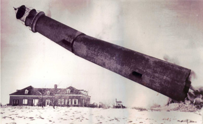 Just a second or two remained before the final demise of the historic Shinnecock Bay Lighthouse. Just three years earlier, in 1945, thinking that the battle had been won to save the lighthouse from destruction, the Hampton Bays Board of Trade and Village Improvement Society published a half page promotion that featured the lighthouse with the following caption, “It stands today upon a solid foundation like our faith in our country, America.” But, in the end, the Coast Guard, claiming the tower was unsafe, had its way. Their destruction of the lighthouse shook the core of the community as much as it shook the earth when the lighthouse came down in a crash that could be heard for three miles. The painful memories remain in the hearts and minds of many to this day. (Lighthouse Digest archives.)