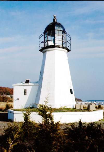 Prudence Island Lighthouse in Rhode Island as it appears today. It was once the original Goat Island Lighthouse. In 2000 the Coast Guard granted a 20-year historic preservation lease for the lighthouse to the American Lighthouse Foundation. However, when the Prudence Island Conservancy, which had never requested a preservation lease from the Coast Guard for the lighthouse, found out that the lighthouse was now under the care of the American Lighthouse Foundation (ALF), they protested. However, the Prudence Island Conservancy never bothered to give the courtesy of contacting the American Lighthouse Foundation to politely ask them to relinquish their lease on the lighthouse in favor of them. Instead they contacted the media and their congressional delegation to protest loudly. Although the American Lighthouse Foundation was under no obligation do to so, they gladly relinquished their lease so that the locals could restore and maintain their lighthouse, something ALF would have done sooner if they had actually known that the Prudence Island Conservancy had wanted the lighthouse. (Lighthouse Digest archives photo by Francine Dollinger.)