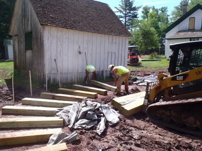 Laying new tiles for the tram at Michigan Island Light Station. Back to the edition of: Sep/Oct 2013