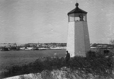 Squirrel Point Lighthouse in Maine shortly after it was constructed. At this time a workman can be seen in the lantern room working on the installation of the lighthouse lens. (Lighthouse Digest archives.) Back to the edition of: Nov/Dec 2013