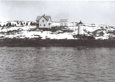 A winter scene at Squirrel Point Lighthouse with snow on the ground from a photo taken by lighthouse keeper Charles L. Knight. This photo was taken before combination fog bell structures were built and before the upper deck galley was built around the tower. (Don Malonson collection, Lighthouse Digest archives.) Back to the edition of: Nov/Dec 2013