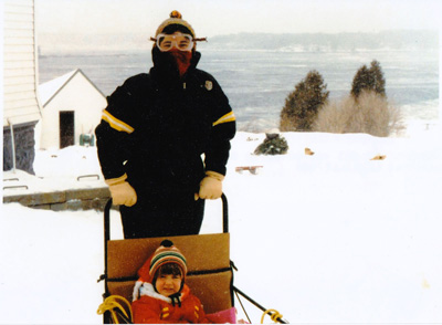 On Christmas Day 1980, Squirrel Point Lighthouse keeper Joseph Robicheau, using a sled pulled by a snowmobile, was able to get his wife and two children “over the river and through the woods” from Squirrel Point Lighthouse to the family car. The wind chill was minus 50 degrees. (Courtesy Leanne Robicheau.) Back to the edition of: Nov/Dec 2013