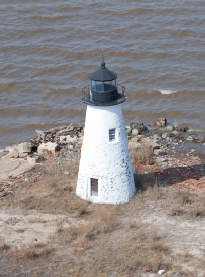 Aerial view of Pooles Island Lighthouse, Maryland. Erosion is a constant threat to the lighthouse. (Photograph courtesy U.S. Army.) Back to the edition of: Nov/Dec 2011