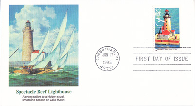 A First Day of Issue cached envelope of the Spectacle Reef Lighthouse. (Lighthouse Digest archives.) Back to the edition of: Jul/Aug 2014