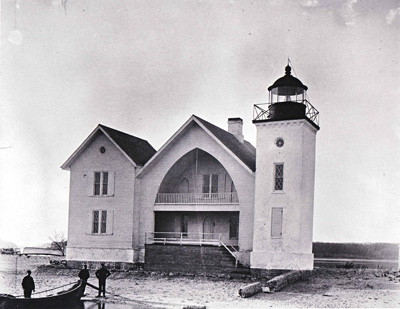 This rare image shows the original and, quite eloquent, keepers’ home of Lloyd Harbor Lighthouse. Can you imagine sitting on this porch and watching the ships of yesteryear sail past? Sometime between 1890 and 1893 the keeper’s house was dramatically altered as is shown in next photo. (Lighthouse Digest archives photo.) Back to the edition of: Nov/Dec 2014