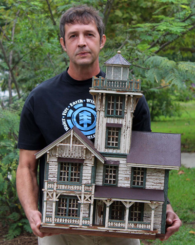 Jefferson Garvey of “Recycling is for the Birds” holding the model of the Point Fermin Lighthouse that he built for Mary S. Wynn. Back to the edition of: Mar/Apr 2015