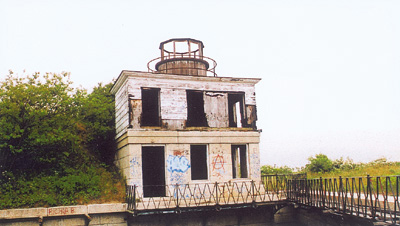 Clarks Point Light as it appears today. Last year attendees of the American Lighthouse Foundation Rhode Island fund-raiser received the rare opportunity to visit the grounds of the old fort and view the lighthouse. It will now be restored thanks in part to a generous donation by the electric company NSTAR. Back to the edition of: December 2000