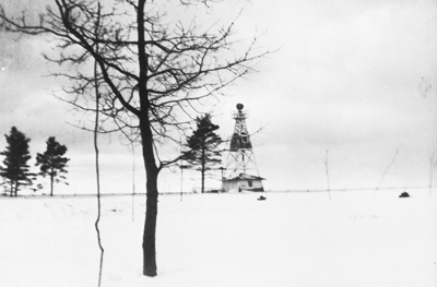 This temporary beacon served as the North Entry Ship Canal Lighthouse. Erected in 1935 it came down in 1950. Back to the edition of: March 2001