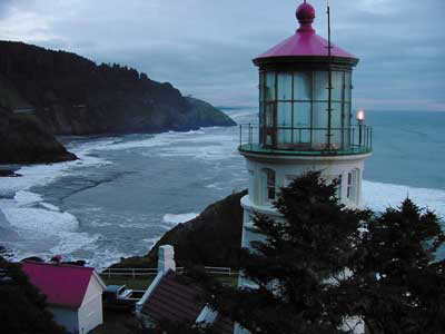 A temporary light was in use during the lens restoration at Heceta Head Light, Oregon. Back to the edition of: October 2001
