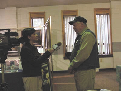 Tim Harrison, editor of Lighthouse Digest and cofounder of Lighthouse Depot being interviewed by Lisa Dornan of Channel 11 Action News WBKB-TV, Alpena. Lisa, Tim and others had previously taken a life remembering boat ride to Middle Island Lighthouse. The interview, which aired on the evening news, centered on why it was important to save lighthouses such as Middle Island. Harrison also explained the goals of the American Lighthouse Foundation and discussed the recent lighting of Maine’s Little River Lighthouse that was also shown on the Michigan evening TV news.
