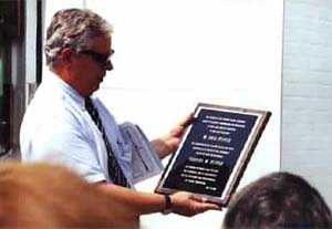 Richard Carter, Secretary of Friends of Fenwick Island Lighthouse, proudly holds the plaque honoring W. Paul Pepper and his wife Dorothy Pepper for the work they did in saving and maintaining the Fenwick Island Lighthouse. The plaque will be displayed at the lighthouse. It was presented to Paul Pepper at the rededication ceremony this past July Back to the edition of: September 1998