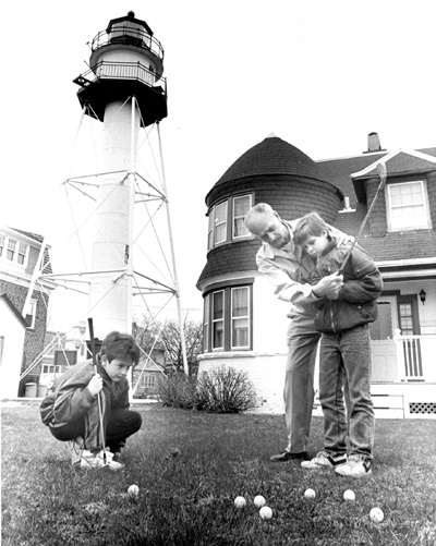 Frank playing golf at the light station with his grandsons. Courtesy of the Schubert family. Back to the edition of: March 2004