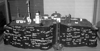 This scale model of Rocher aux Oiseaux and its buildings was created by Alphonse Arsenault, son of Montague Arsenault, to pass the time during a winter he filled in for his father as keeper. The model is on display at the Musee de la Mer on Ile du Havre-Aubert. Courtesy of Jason Bent, Centre Nautique de l’Istorlet. Back to the edition of: May 2004