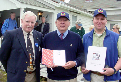 Shown here is Dick Melville, center, with Tim Harrison of ALF (l) and Dick’s son Tom (r) at the First Day of Release of the Maine lighthouse quarter that featured Pemaquid Point Lighthouse.They are holding the guest books signed by the Governor and other dignitaries that climbed the lighthouse. The day’s celebration was one of Dick’s proudest moments especially when Maine’s Governor Baldacci became the first governor to ever climb the tower.