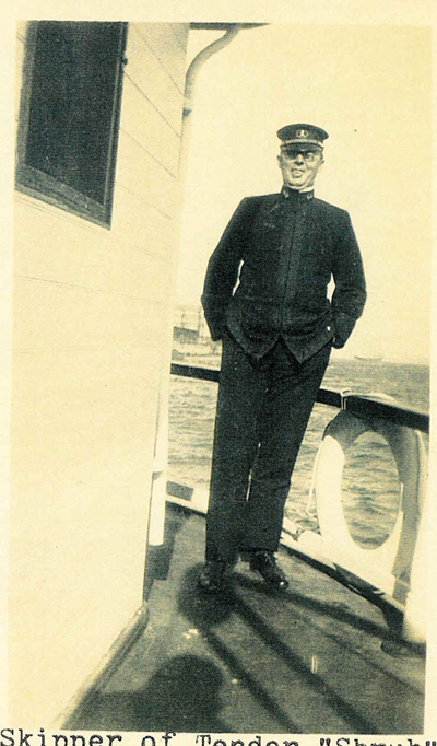 The unidentified captain of the Lighthouse Tender Shrub when George R. Goddard served as an officer of the vessel. Photograph courtesy of George R. Goddard, Jr. Back to the edition of: March 2005
