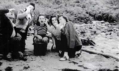 The clambake party included (left to right): Barbara Austin, Carolyn Gray, Dorothy Gray, Mae Doble, Thelma Farmer. Mae later became Dotti’s sister-in-law. The photo was taken by Elaine Farmer. Back to the edition of: May 2005