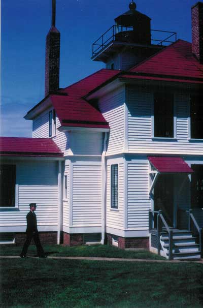 Matt Welter, who portrays a lighthouse keeper at Raspberry Island Lighthouse, is shown here dressed in the uniform of a keeper of the U. S. Lighthouse Service. Back to the edition of: May 2005