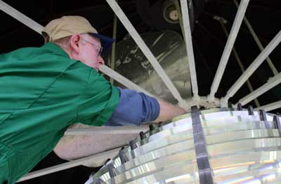 Jim Woodward examines the top of Seguin's lens. Back to the edition of: July 2005