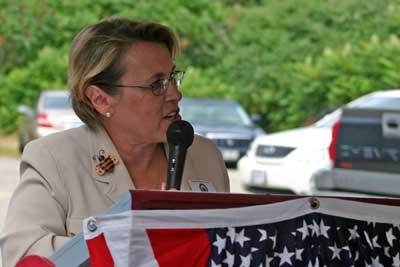 Former Maine State Representative who sponsored the bill for Maine Lighthouse Week, Deb McNeil, reads remarks from Olympia Snowe. Snowe commended the lighthouse preservation work being done by Tim Harrison and the American Lighthouse Foundation. Back to the edition of: October 2005