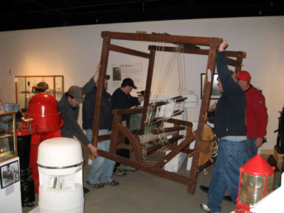 Movers deliver the Abbie Burgess loom from the American Lighthouse Foundation’s collection into place at the Maine Lighthouse Museum. The loom once belonged to Abbie Burgess Grant, one of Maine’s famous lighthouse heroines. Back to the edition of: June 2007