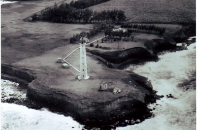 Arial view from the Lighthouse Digest Archives of Kauhola Point Lighthouse as it appeared in 1934. Notice how far the lighthouse tower is from the edge of the cliff. Back to the edition of: November 2007