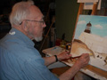 Upon his third retirement in January of 2008, at the age of 80, Ernie took up art, painting in Acrylics. With no formal training, he started painting Maine coastal scenes. However, when he read about gallery art shows, he realized that he would need to keep his paintings to one theme. So, he decided to do create a painting of every Maine lighthouse. His thought was that, because the art work was done by a former lighthouse keeper, it would draw some public attention. It also occurred to him that he might be able to sell the paintings to raise money to have his book reprinted.