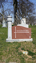 Tombstone Although we are not sure, this tombstone for Carlton E. Woggon at the Calvary Cemetery in Toledo, Ohio, gives the impression that it has been designed to look like a lighthouse. (Photo by Donald Moline.)