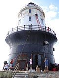 Intrepid volunteers from the Delaware Bay River & Bay Lighthouse Foundation started the massive undertaking of painting the 1926 Harbor of Refuge Lighthouse in Lewes, Delaware. Their goal, through several site visits, was to get the lighthouse painted before the winter months set in.