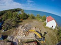 The work included demolition, removal and disposal of the lighthouse, boathouse, fog signal building, generators building, wharf, and the two keeper’s homes. Mr. Campkin said “The buildings were in very rough shape. We could only salvage a few items, such as doors. The lantern had been removed from the tower years ago. All debris from the demolition including the wood, concrete and brick had to all be removed from the island requiring the barge having to make several trips to the mainland. The lighthouse site then had to be rough graded as close to its natural state as possible and they had to relocate existing rip-rap along the shoreline.”