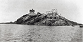 Is the Relief Tender on Its Way? It is believed that the lighthouse keeper, who is standing on the fog signal structure and looking out to sea through the spy glass in this 1936 photograph of the Dumpling Rock Lighthouse near Dartmouth, Massachusetts, is of lighthouse keeper George T. Gustavus, who later became the head keeper at Chatham Lighthouse, which is prominently featured in this issue. The families of lighthouse head keeper Octave Ponsart and assistant keeper Henry Fontaineau were lucky to escape with their lives when the entire Dumpling Rocks Light Station was nearly destroyed in the great hurricane of September 21, 1938. Shortly thereafter, the station was demolished and replaced by a nondescript, Erector-set-style automated structure and the keepers were transferred elsewhere.